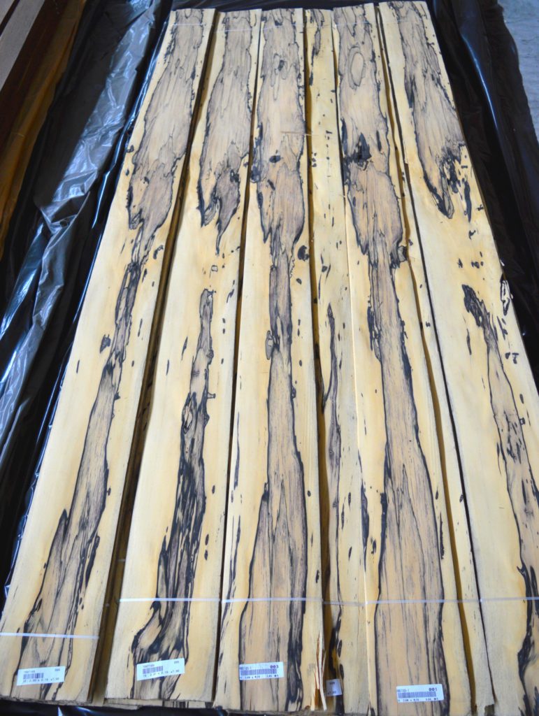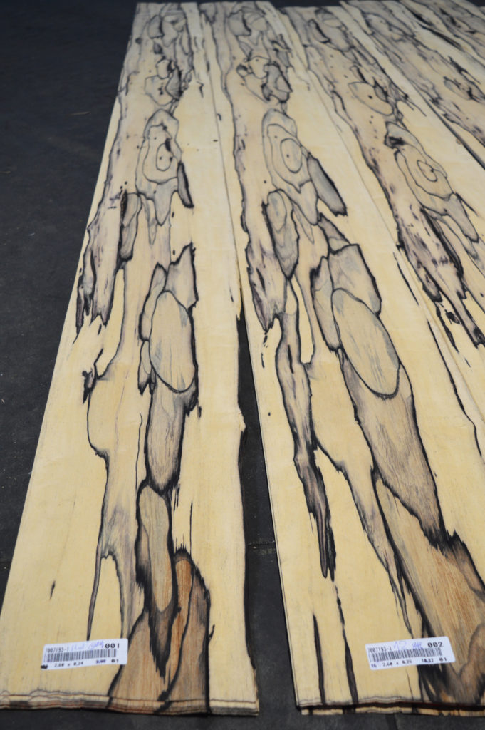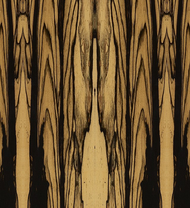 Właściwości i obróbka: Bardzo dekoracyjne czarno-białe wzory. Gdy liście okleiny są dopasowane, meble z niej wykonane mają piękny i niepowtarzalny wygląd. Obróbka nie stwarza problemu.