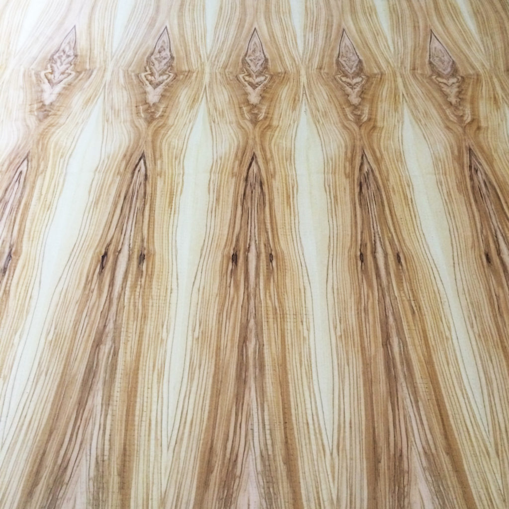 Właściwości: Drewno jest żółtawego koloru i jest niezwykle dekoracyjne z powodu drobnych ciemnych żyłek rozprzestrzeniających się nieregularnie na powierzchni, tworząc piękny efekt szczegolnie na większych powierzchniach.